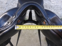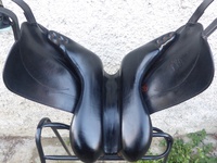 Jednobočnicové drezurní sedlo francouzské značky, posedlí 18( odpovídá spíše 17-17,5), komora střední, polštáře tvarované pro volný pohyb lopatek, neklouzavá teletina. Tento model je shodný s pozdějším modelem Makila LAB E. Výborný stav sedla, rok výroby 2009.