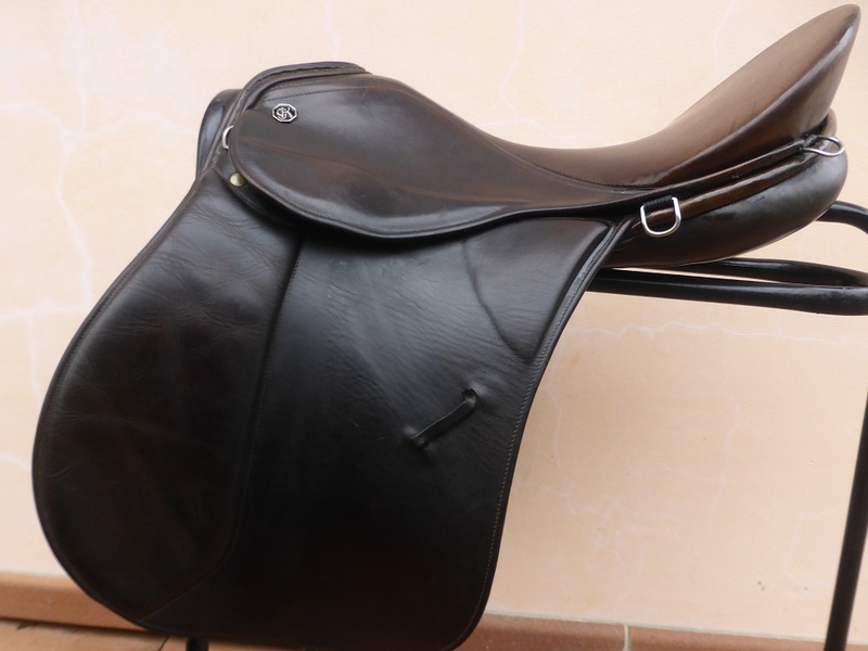 starší klasické školní sedlo německé značky, posedlí č.2 - 17,5-18 , otevřená komora široká, , vlněný polštář, Komora lze přetvarovat. Cena nového sedla 2256 € https://www.kieffer.net/de/saettel/vielseitigkeitssaettel/4-garmisch.html